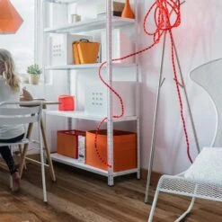 Planks are 100% waterproof and easy to clean, making them ideal for kitchens, bathrooms, kids’ rooms, and basements