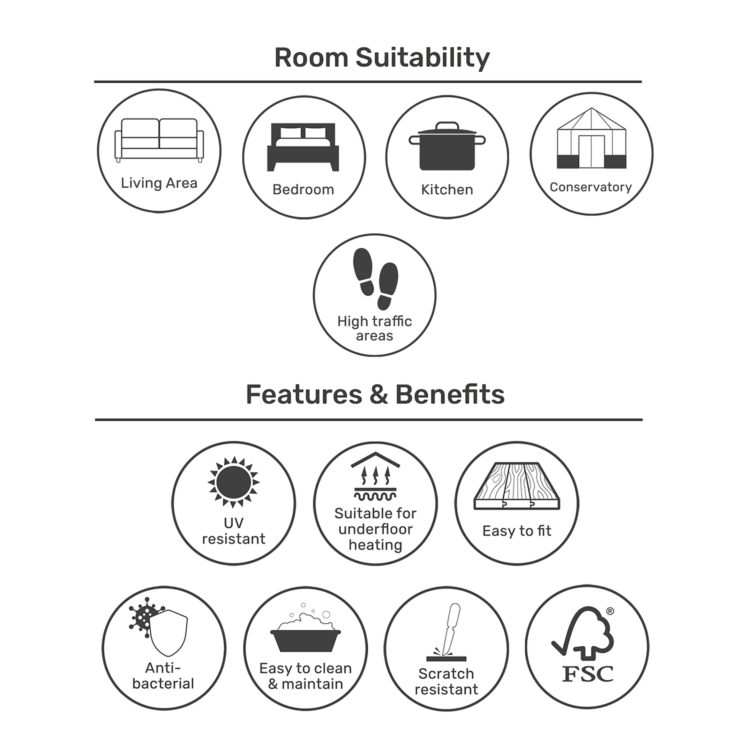 | Rooms Suitable For | Kitchen, living areas, conservatory, high traffic areas |