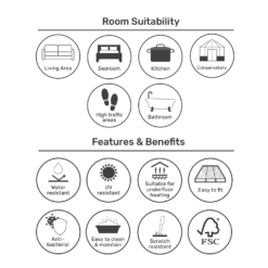 | Rooms Suitable For | Kitchen, bathroom, living areas, conservatory, high traffic areas |