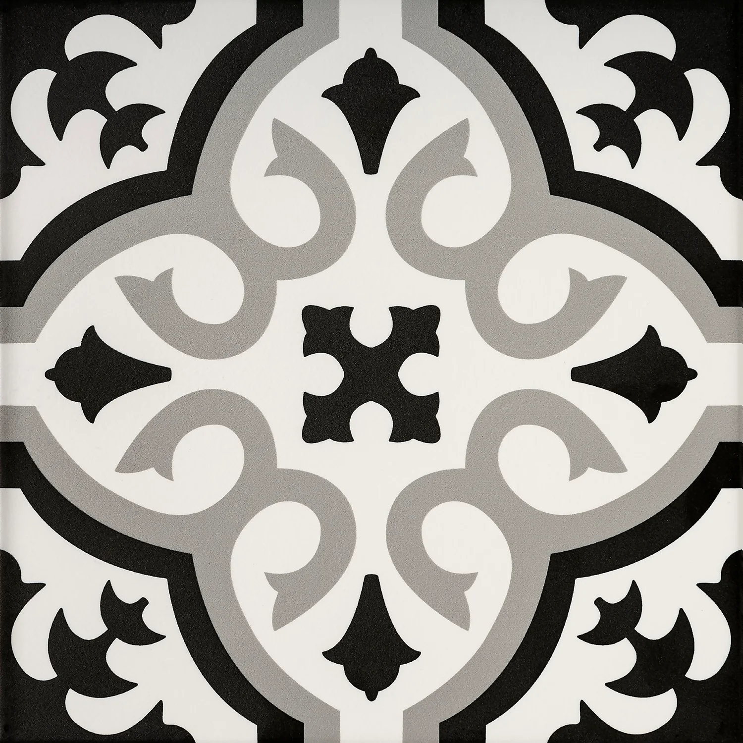 Effortlessly cool, the intricate monochrome floral design of this tile will add a bold statement to your space. A smaller format tile, it is part of House of Tiles Fiore collection. These tiles feature an encaustic effect, which creates a chalky like matt finish. They’re both beautiful and practical. The simple yet impactful half and half design makes it easy to create feature walls or floors. The durability of porcelain makes these tiles suitable for any space in your home, including high-traffic areas.