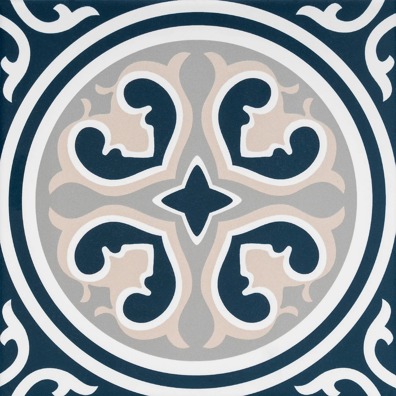 Effortlessly cool, the grey and blue floral design of this tile will add a bold statement to your space. A smaller format tile, it is part of House of Tiles Fiore collection. These tiles feature an encaustic effect, which creates a chalky like matt finish. They’re both beautiful and practical. The simple yet impactful half and half design makes it easy to create feature walls or floors. The durability of porcelain makes these tiles suitable for any space in your home, including high-traffic areas.