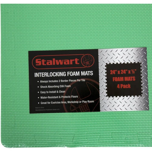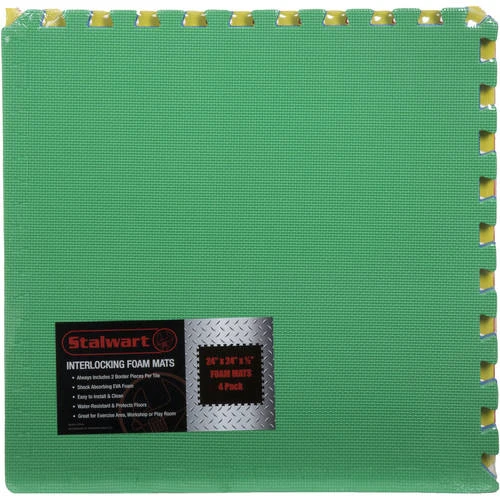 The Stalwart Interlocking EVA Foam Floor Mats will help reduce fatigue and protect your floors thanks to a full 1/2 inch of thickness. These Multi-Color Floor Mats are perfect for exercise areas, workshops or kids play areas. Give yourself shock-absorbing comfort when doing Yoga, Pilates, Cross Fit or weight lifting! Protect your little ones when they play, by assembling the mats into a virtual carpet to cover the play area floor! Can also be used in any room you might be standing for long periods like your kitchen or bathroom. These mats are NON-TOXIC, easy to assemble and wipe clean with soap and water. They offer water resistance and a non-slip surface. IMPORTANT: Avoid buying counterfeit products and transacting with unauthorized sellers. Look for our logo on the packaging for every one of our products. Stalwart is committed to providing the consumer with the absolute best price and value on our entire line our products, which we ensure by applying a rigorous Quality Control process. Stalwart is a registered trademark protected by U.S. Trademark law and will be vigorously defended.