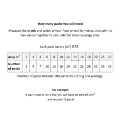 - Tile size: 60 x 60cm and 2cm deep. Each pack contains 2 tiles, which covers 0.72sqm. For a 10sqm patio you would need to order 15 packs, making it 30 tiles (incl. +10% extra for wastage)