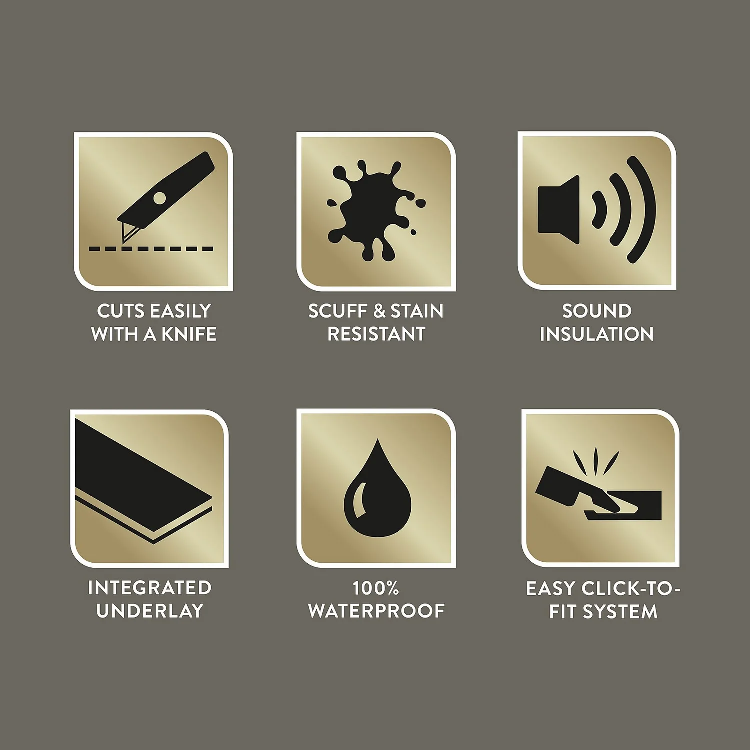 Kraus Weaveley Light Oak is a waterproof herringbone pattern luxury vinyl tile with integral underlay and Rigid Core Technology. A light wood base with a high contrast grain makes this colour an instant classic. Ideal for use in most living spaces. It cuts easily with a knife and provides an easy and clean flooring solution which is also resistant to scuffs and stains.