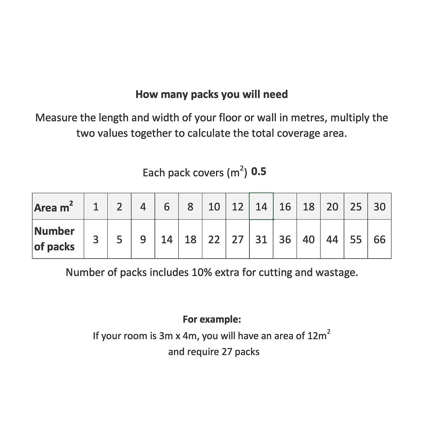 | Coverage Per Pack | 0.5 sqm |