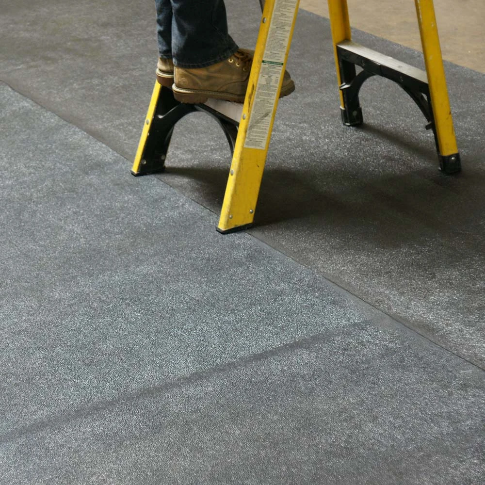 - 1/8-inch thick x 48-inches wide rolled rubber flooring that is available in 8 lengths for DIY installation